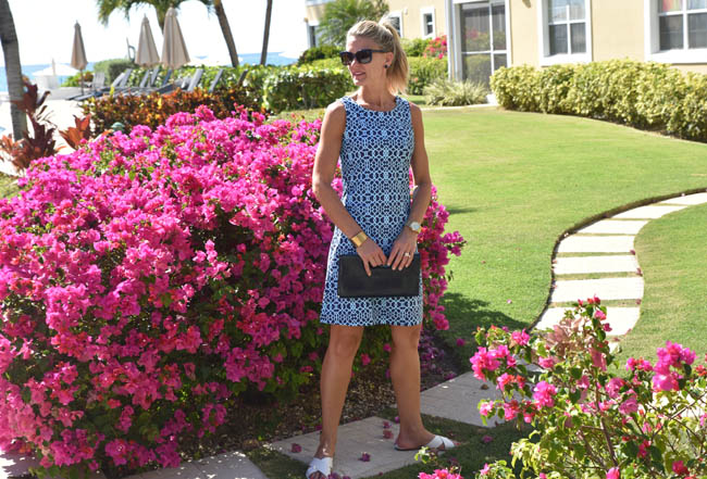 I thought titling this post “Best Travel Dress Ever” may have seemed a little presumptuous but trust me, this is the best travel dress ever. I can’t remember the last time I ironed or steamed an item of clothing at home, and I certainly don’t want to have to deal with that while on the road – whether traveling for work or for pleasure. I purchased my first Jude Connally dress about a year ago, and now am tempted every time I see a new style or pattern. These dresses hold their shape, have great color, and never show a wrinkle. I grabbed this blue and aqua one before our trip and I wore it for afternoons out and about as well as for super casual times around the pool or on the beach.