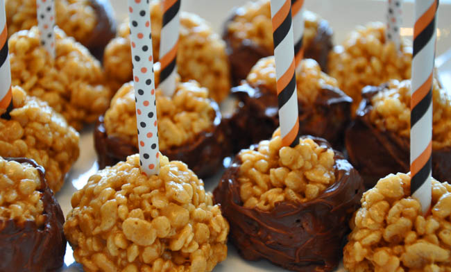 Are you tired of cake pops and looking for an alternative? I kid. Who would ever get tired of cake pops? They’re delicious. And cute. What I meant to ask was “do you think cake pops look really hard to make and want an easier option? It’s difficult to pick a favorite treat from when I was a kid – as there were many – but Scotcheroos certainly rank right up there. This is a great, fun (dare I say hip? can a dessert be hip?) way to serve them. Modernizing the “bar” style of a classic dessert, if you will.