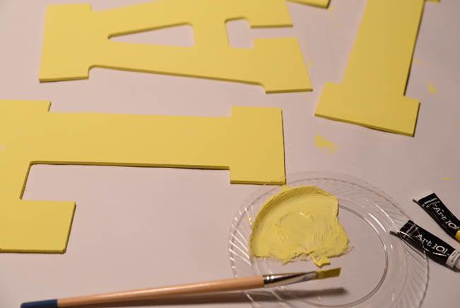 Paint the letters a color of your choosing. You could also leave them white if you wish, but I thought these should be a color since they would be placed on a cream wall.