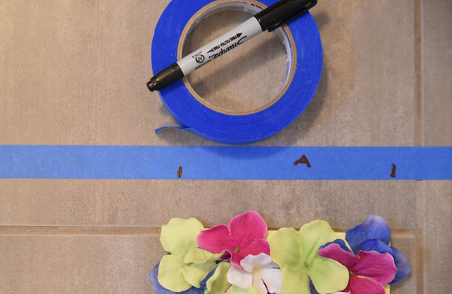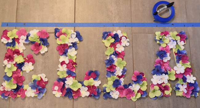 Place the letters on the floor and space out as desired, marking the placement on painters’ tape with a marker.