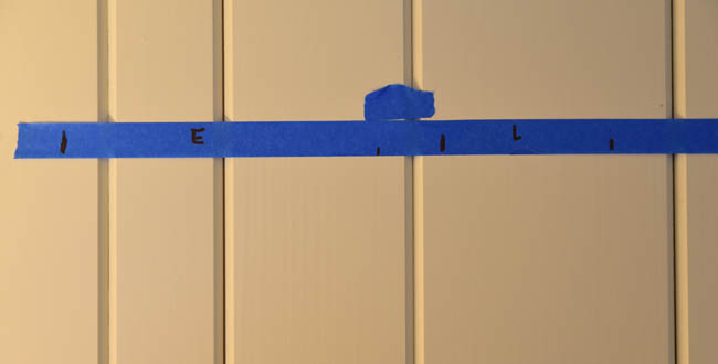 Transfer the tape to the wall, using a level to insure correct placement. Place the tape at the bottom of the marking of where you indicated you would like the top of the letter to hit on the wall.