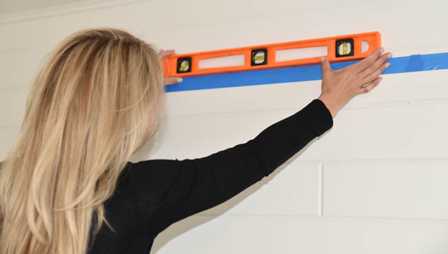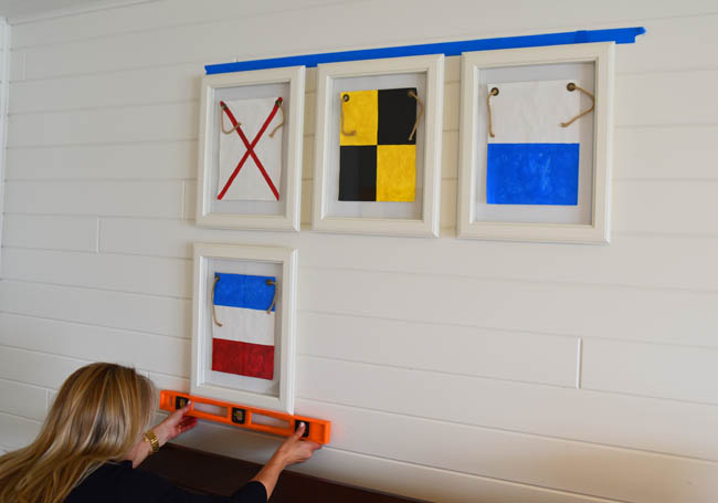Step 12: Make sure the placement of the tape is level, then begin to place the frames on the wall.