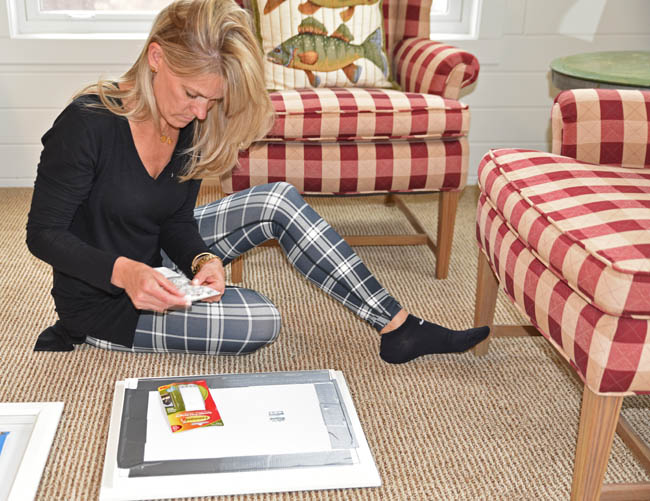 Step 9: Secure the mat to the back of the frame using duct tape. I know, it’s pretty high class. But I tried to use tiny nails and was certain I was going to crack a frame. Plus, I almost always need to reposition things in frames, or clear out a spec of something or other, and this is a much easier way to go about it if you need a re-do.