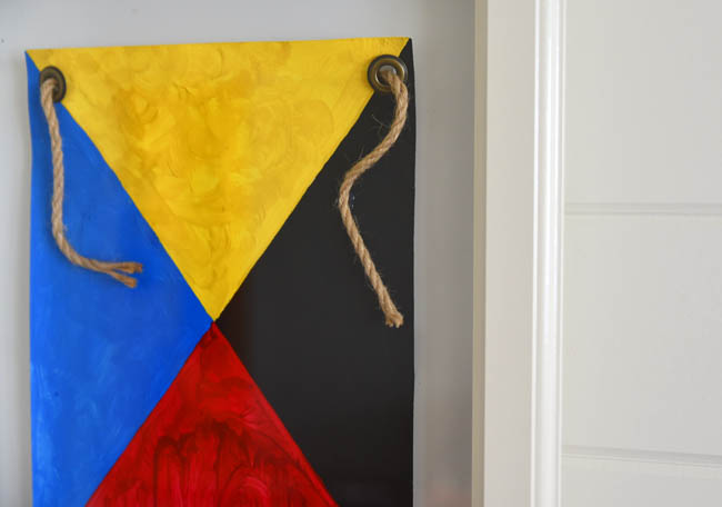 Reality Check. If you are wondering, no, I didn’t check the meanings of all the flags (not until writing this Reality Check, actually) – you may recall that Taylor started by picking letters of his name, then moved to ones that looked easier to paint. The full message (which is kind of hilarious – especially certain ones considering that they are positioned right above the bed) reads: “Require assistance | You should stop, I have something important to communicate | Diver below (I am undergoing a speed trial) | Do not pass ahead of me | Stop carrying out your intentions and watch for my signals | To be used to address or call shore stations.” Clearly I didn’t know the meanings, as that last one is completely boring, and there are so many other interesting messages from which to choose (see link).