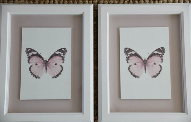 I chose these frames from Ikea (link here) because they had a lot of the work done for me, having the mounted image of the butterfly, which I knew could serve as the base on which to secure the flag and give it a floating effect.