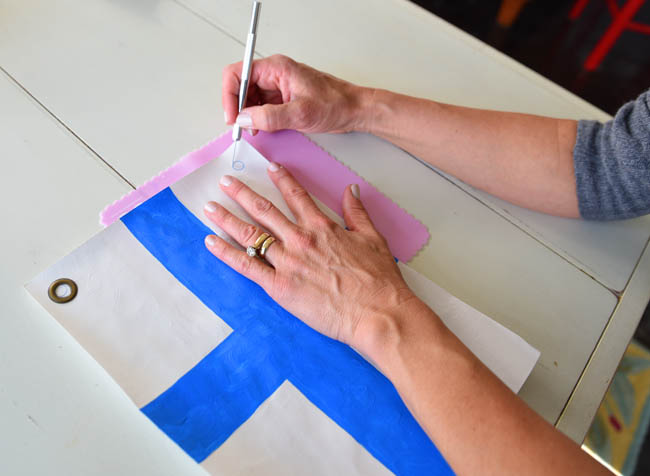 Note that some of this is optional and up to personal choice. I had a very specific finished product in mind and therefore wanted to incorporate the grommets and rope and to mount them in a frame where they would have nice dimension, almost as if in a shadow box. But you could easily eliminate some of these steps if you wanted to simplify the project (and minimize some of the expense) by framing the flags without the rope and grommet in a regular frame.