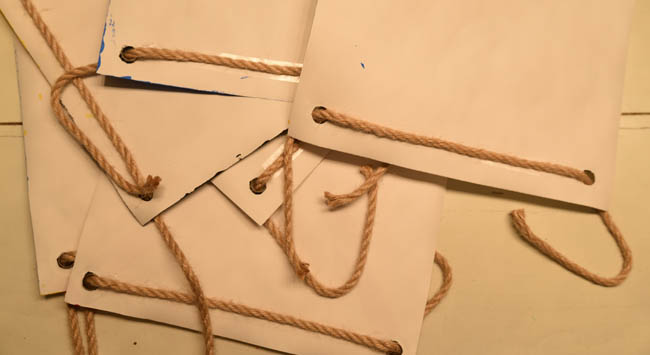Step 7: Thread the rope through the back of the flags. On the front of the flags secure the rope in varying positions with a dab of hot glue.