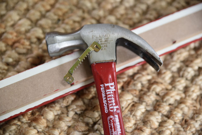 The frame is super light, so attaching simple hanging hardware on the back does the trick.