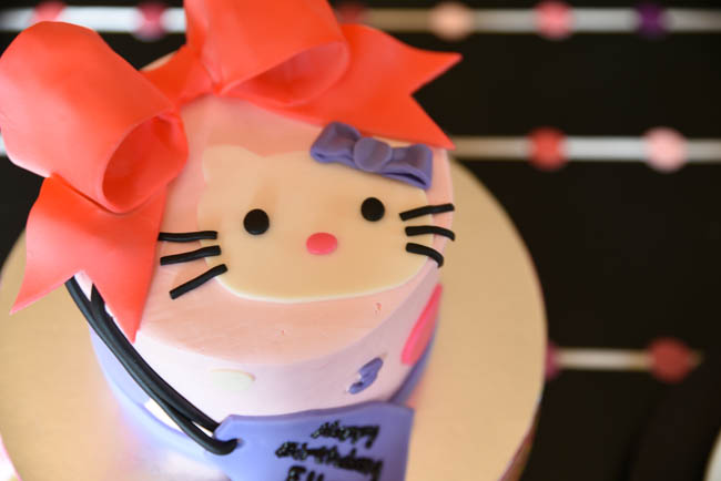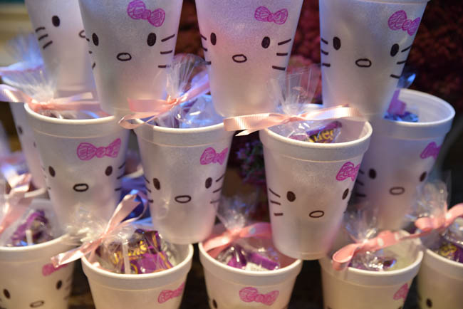 Hello Kitty treat cups for Ella to take to school. My intention was to find styrofoam soup cups with lids, but all I could round up the day before the party were taller ones without lids, which resulted in the additional step of the clear bags with ribbon ties. Save some time by planning ahead to source cups with lids. My goodness – this place is actually called “NexDay Supply” and I still didn’t have my act together enough to get these ordered in time for her birthday.