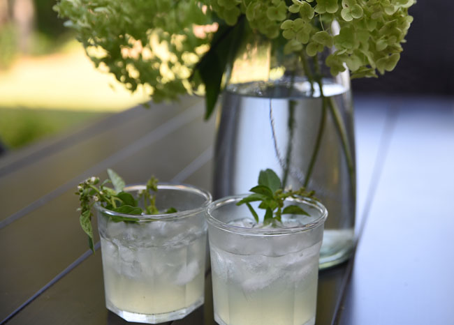Note: These drinks are yummy – consider doubling the batch if you think your guests will want to enjoy more than one. You will be making more syrup than you need anyway – might as well use it all (although it will keep if you cover and chill it, for about 5 days). I used lemon basil for the syrup the first time I made this and while good, it was pretty sweet. I prefer and recommend regular basil – plus, it is much easier to find! Have plenty of fresh lemons on hand for guests to add a squeeze if they like a little more tartness to their drink.