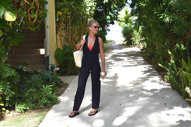 Reality Check. I do really like this cover-up, but to be honest I still grabbed the shorter, more casual t-shirt type cover-ups on a far more frequent basis when on the trip. I had forgotten how HOT the sun is in Cayman – pants during the day (except for perhaps a early trip for coffee) are just not practical.