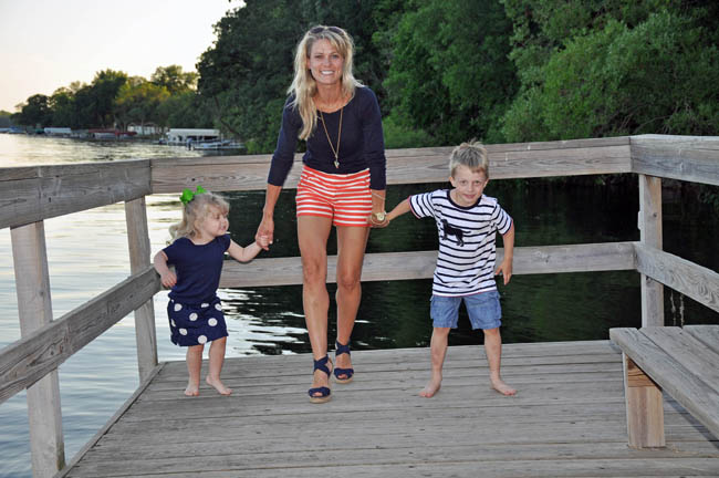 Kerry: J Crew shorts | J Crew shirt | Tory Burch heels (khaki here), C Wonder necklace, Kate Spade earrings | Michael Kors watch | J Crew bracelets /  Ella: J Crew skirt | Old Navy shirt / Taylor: Hatley shirt | Gap shorts / Trevor: Lululemon shirt