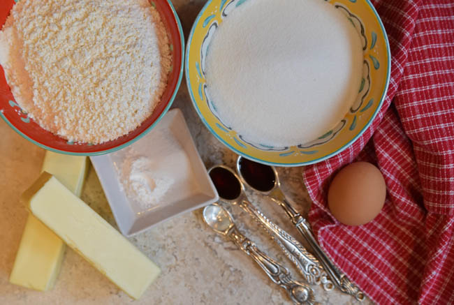 In large bowl, beat butter and sugar with electric mixer until light and fluffy. Beat in egg and vanilla and almond extracts. Mix flour, baking powder and salt; add to butter mixture 1 cup at a time, mixing after each addition. Do not chill dough. Divide dough into 2 balls.