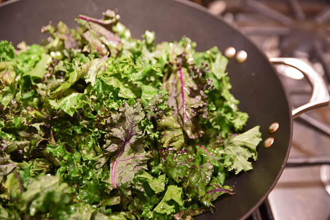 A wok works nicely for the bulk of kale it takes to make a serving for 6. It cooks down to such a small amount compared to when raw.