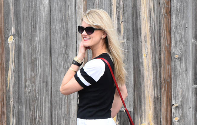 Banana Republic t-shirt (not available online) and vest | Citizens of Humanity jeans | Anthropologie shoes | Tory Burch handbag (old, similar here) | Kate Spade necklace and sunglasses | Banana Republic bracelet | Michael Kors watch | Tory Burch earrings (similar here and love these) | Madewell bracelet