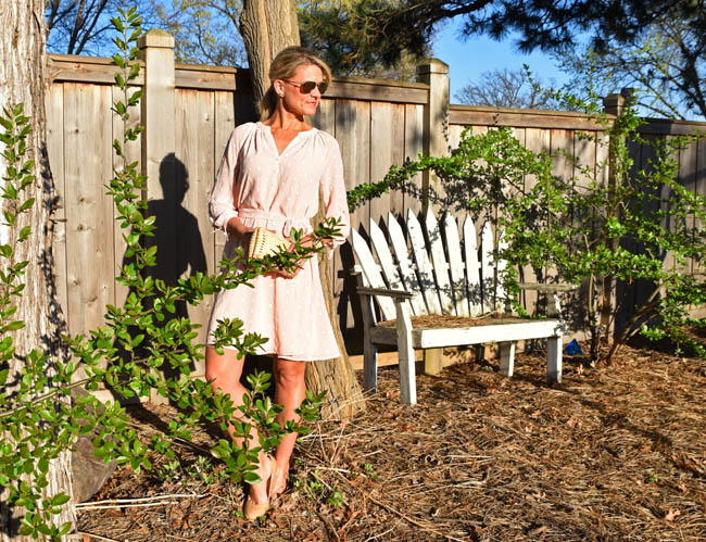 Spring flowers in Minnesota don’t become a reality until mid to late May. Although garden plants are popping and the grass is greening up nicely, we’re missing the cherry blossoms that are so beautiful and prevalent this time of year in others areas of the country. I’ve lived here my whole life and know this to be the case, but I’ve been keenly aware of it lately, especially when looking for a budding backdrop for this floral dress. Although this isn’t a dress that I would normally choose (I generally lean toward bolder colors and prints, like the one here), it’s been nice to have a cute, dainty option for spring holidays and events.