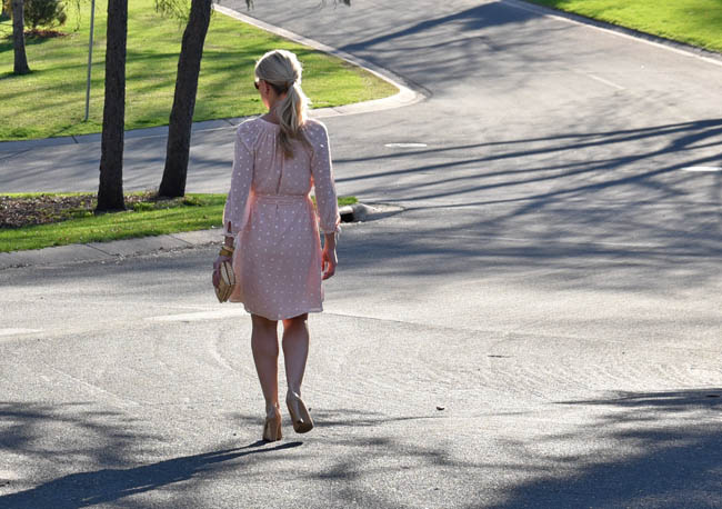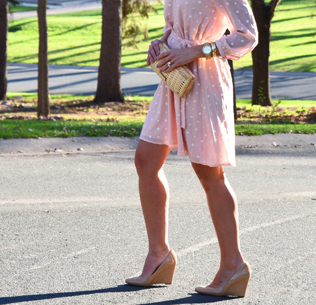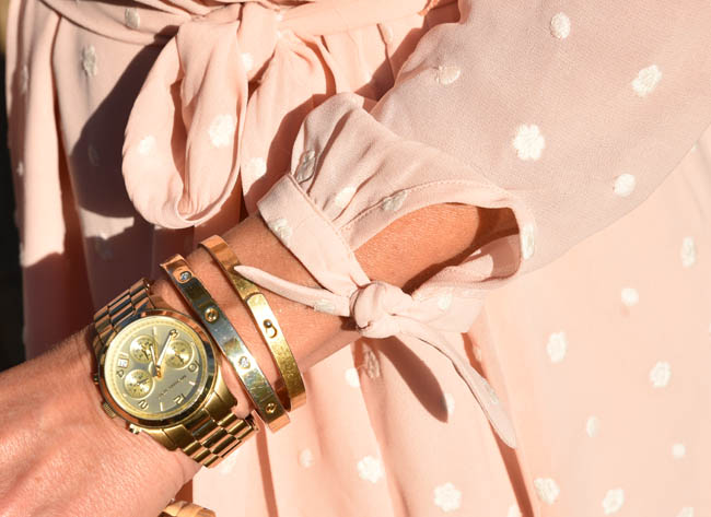 Ann Taylor dress | Kate Spade earrings (my new favorite!) and clutch (old, similar here and love this one) | Banana Republic shoes (love this strappy version here)| Michael Kors watch | Madewell bracelet |Tiffany & Co. sunglasses
