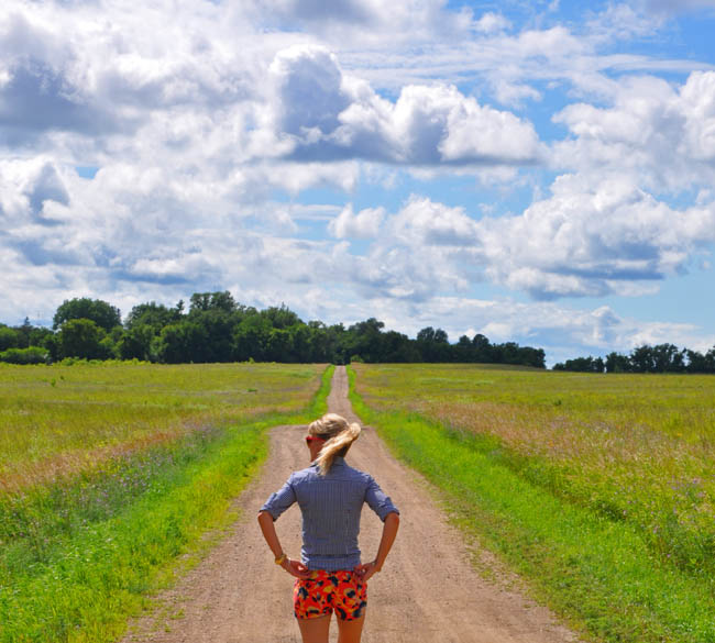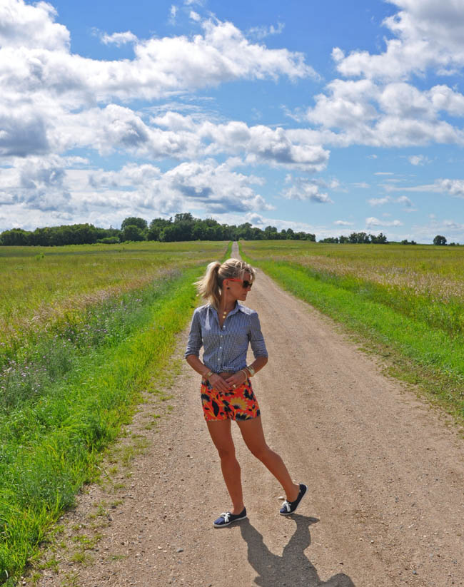 Reality Check. I really can’t think of a single place I would wear this in public and not feel like kind of an idiot. But with that said, Trev and I did have a pretty great time snapping pics of a silly, cutesy outfit against a backdrop of a perfect summer sky and lime green field.