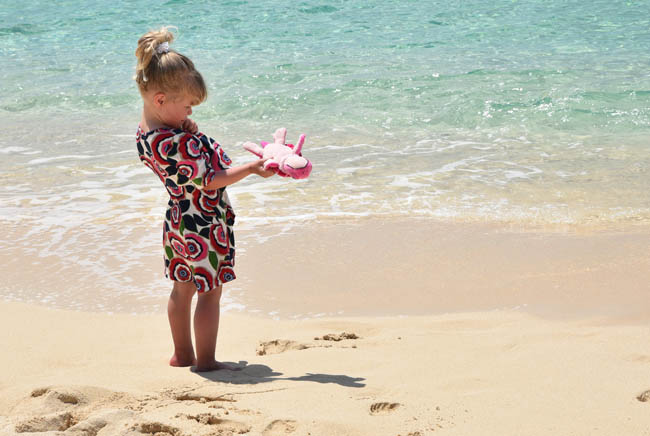 Ella, right after she dropped her new stuffed turtle in the ocean, which immediately followed me warning her not to bring it on the beach in case she dropped it (which she insisted would never happen).