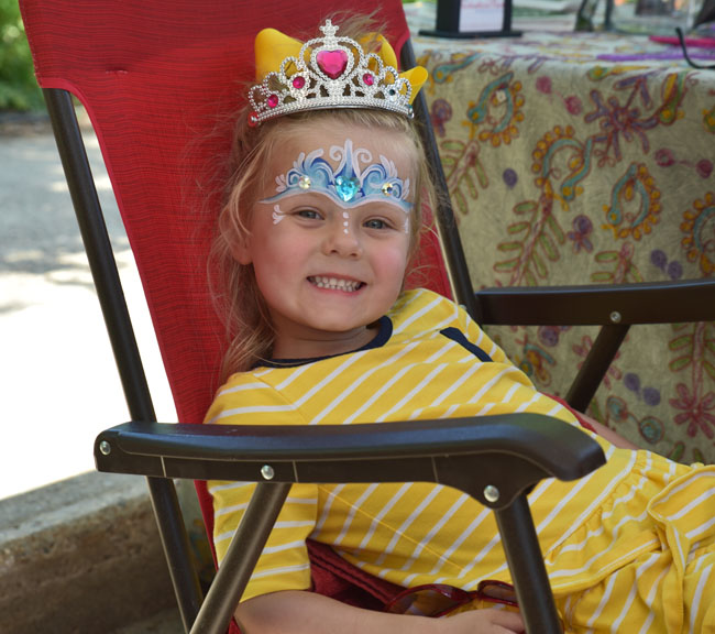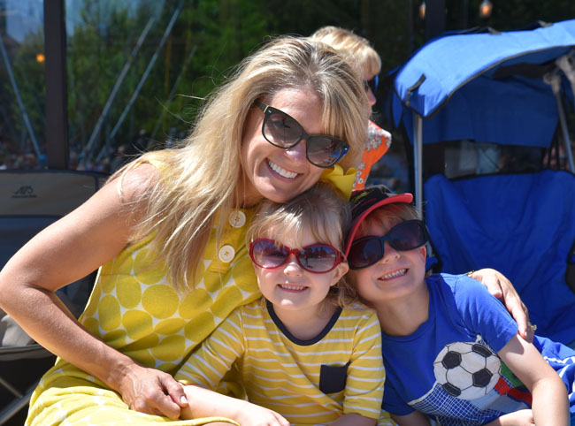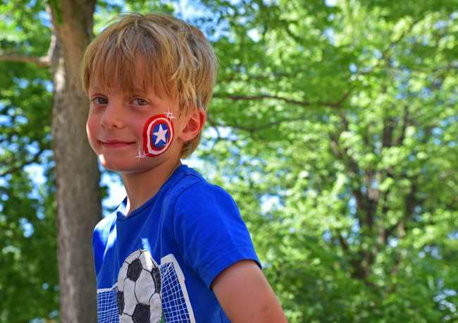 I made the mistake of building up my home town’s Water Carnival a bit too much when talking to the kids about it, such that when the weekend arrived they were a little disappointed to learn that it had nothing to do with (a) water or (b) a carnival. Who can blame them?!  But on Sunday they were completely game for heading into town in the heat to watch the parade. I realized quickly that I had forgotten sunglasses or hats for them, and after a brief attempt at trying to convince them that “your eyes will eventually adjust” I realized how ridiculous that sounded and we ran to my parents’ house and raided my mom’s extra sunglasses and grabbed a hat from my dad’s golf bag. Thankfully, the kids loved their sun gear for the day. We had a great day pouncing on the candy thrown from the parade participants, and with the additions of the “ride” on the trampoline, mini donuts and face painting, we captured what would have been our favorite parts of any true carnival.